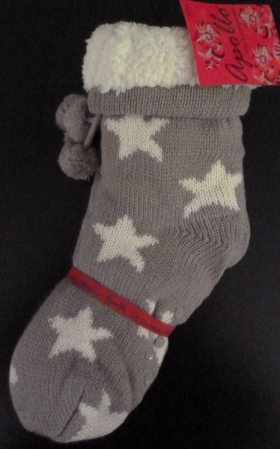 Apollo warme cosy homewear huissloffen voor meisjes met sterren en antislip. Deze heerlijke warme sokken zijn van buiten van acryl en van binnen polyester, badstof gebreid. De sloffen zijn voor in huis en niet voor buiten !!