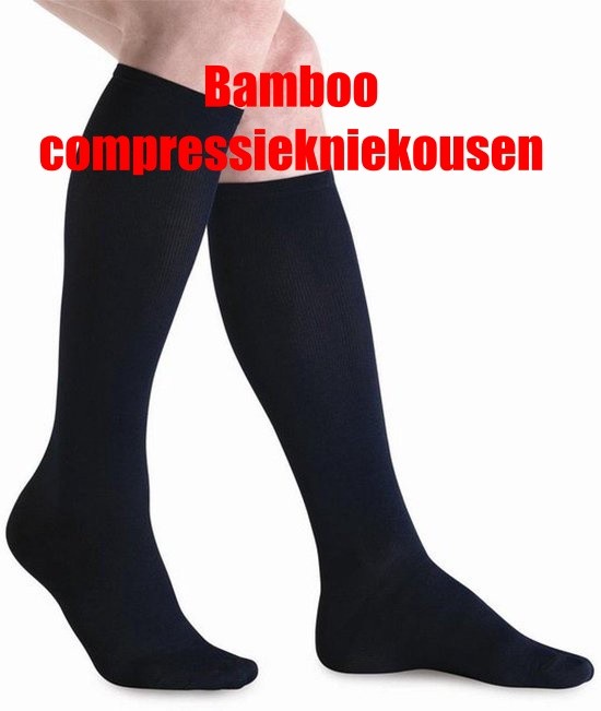 Compressie kniekousen gemaakt van Bamboe, Polyamide en Elastomeer. Deze kniekousen zijn zeer geschikt voor sporters, hardlopen, lange vluchten en mensen met bloedvaatproblemen en hebben geen naad aan de tenen. Makkelijk wasbaar en een hoog draagcomfort vanwege "thermocontrol". Dit houdt in dat de kousen uw temperatuur reguleren. Warm in de winter en koel in de zomer.