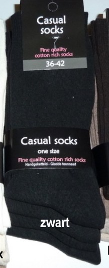 Goedkope, voordelige normale dames sokken zonder naad aan de tenen per 4 paar in een bundel. Deze sokken zijn gemaakt van 70% katoen, 25% polyamide en 5% elasthan