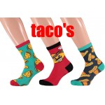 Kindersokken met Taco's of Formule 1 printen per drie paar in een kadoverpakking