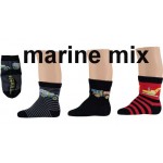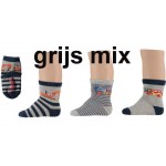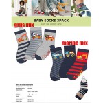 Sokjes met een bulldozer, een vrachtwagen en een cementwagen per drie paar in een bundel. Deze sokjes van 75% katoen, 22% polyester en 3% elasthan hebben geen naad aan de tenen.