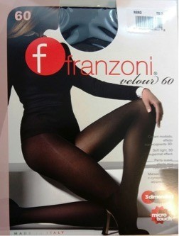 Franzoni/ Perini 60 denier velours panty met 3 D garen. Deze stevige Italiaanse panty heeft een mooie gladde structuur en een lichte glans